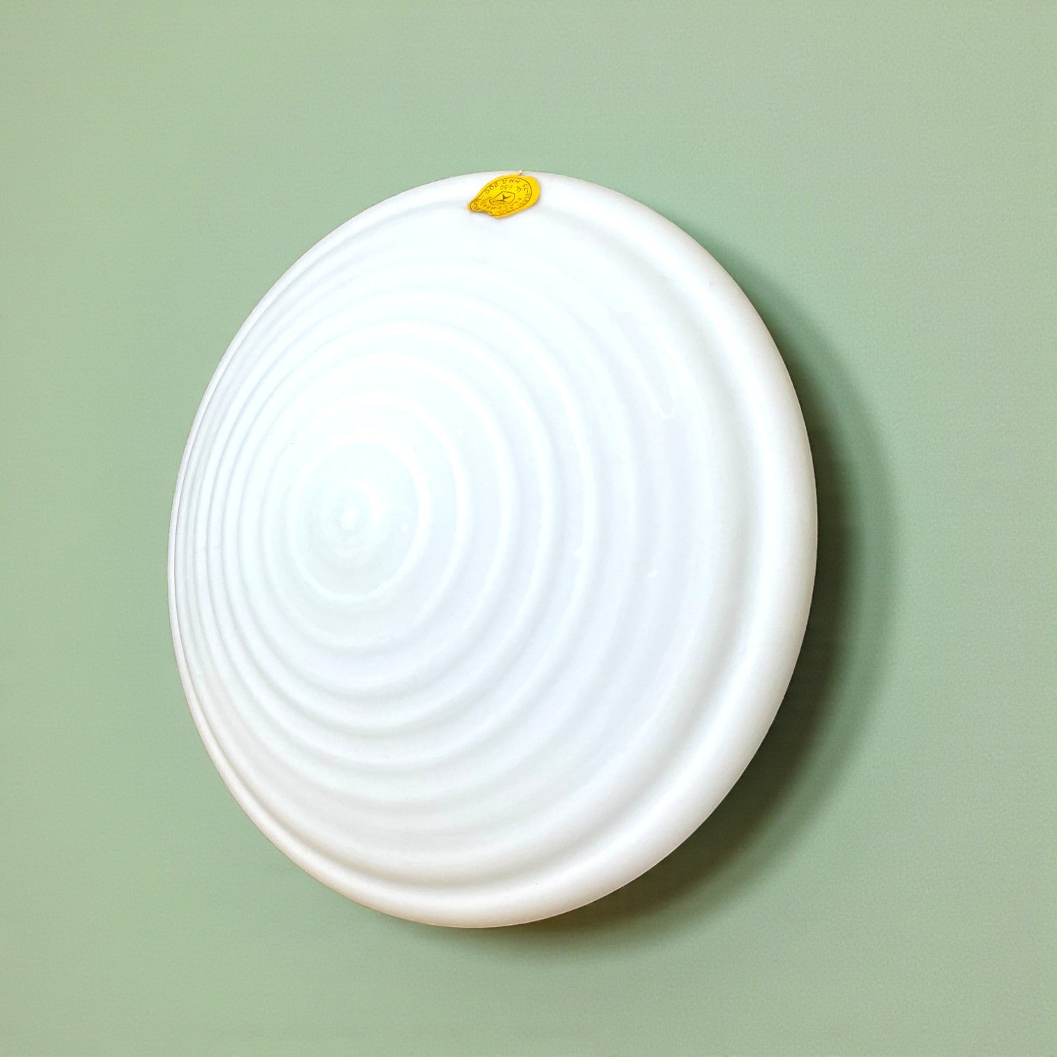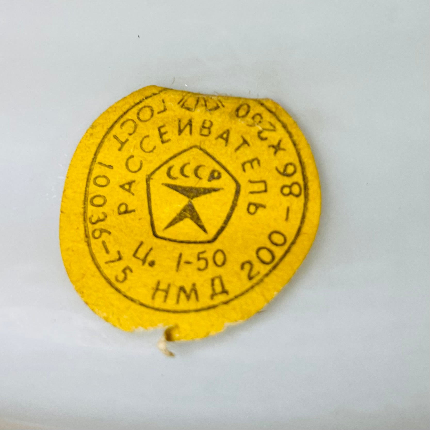 This beautiful light was made in the USSR in the 1975 (the year indicated on the lable) in the style of Art Deco. The lamp is made of ribbed opaline glass, conically shaped, and is supported by an aluminium base, painted gray (original paint). It can be used as a wall or ceiling mounted light.