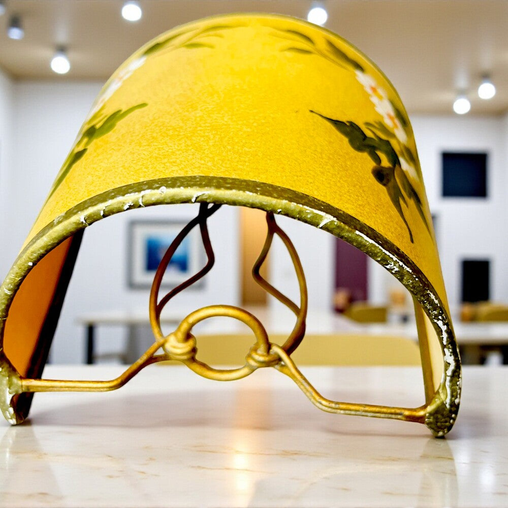 Pair of French green and gold ceramic wall sconces equipped with clip-on hand-painted half-shades. The shades are Portuguese.