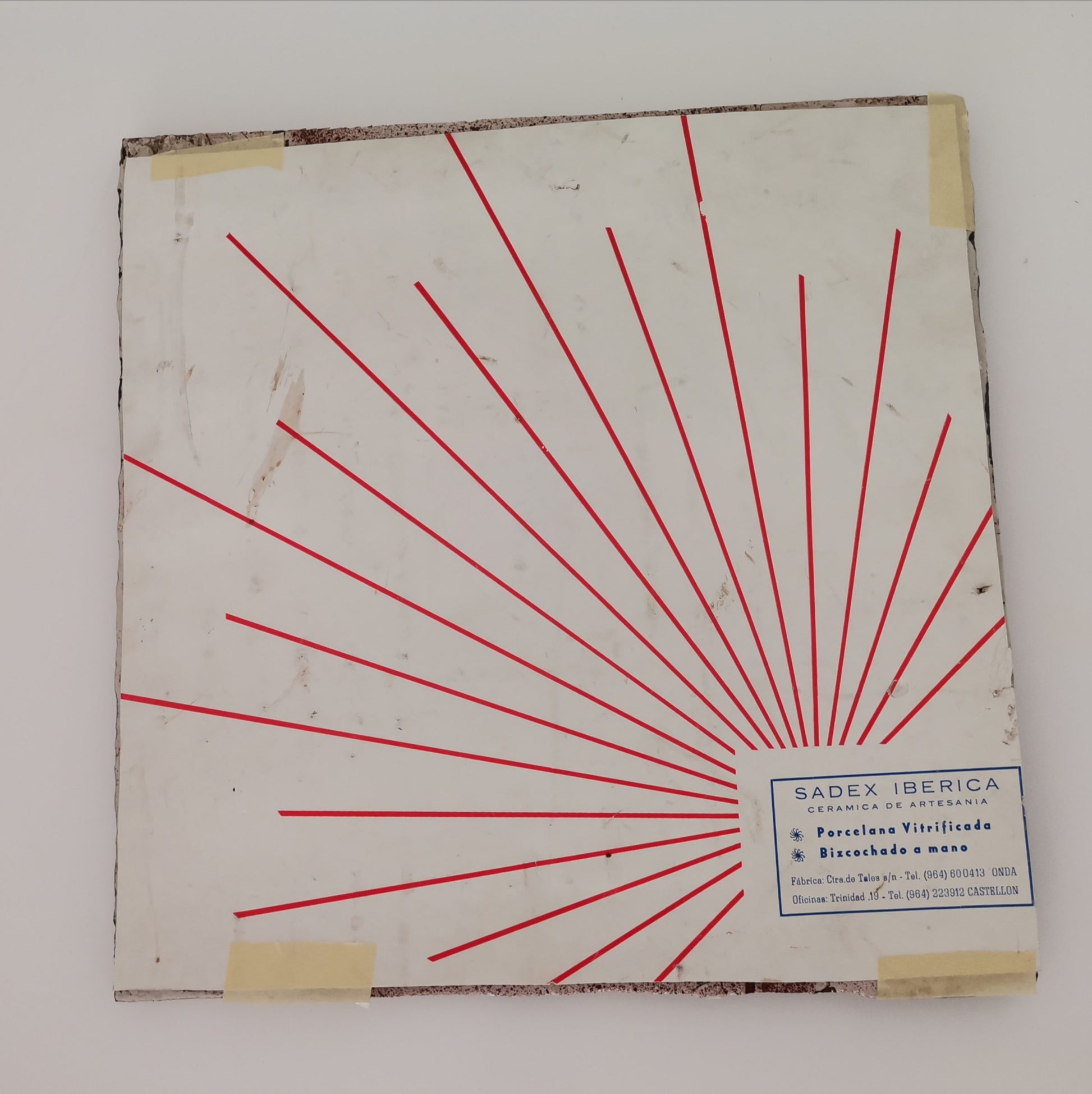 Tile comes with the paper sheet attached to the back, that indicates that it is hand glazed ceramic, made by the framer back in the 1950s.